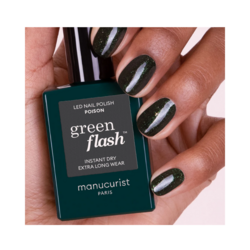 Green Flash eliminates harmful ingredients, dries instantly under LED light, promises enduring wear and brilliant shine lasting up to 10 days, and effortlessly removes in just 1 minute.