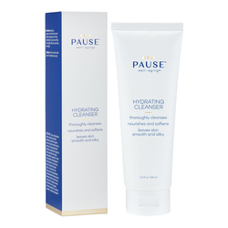 As we approach menopause, our skin can experience both excessive dryness and blemishes resulting from clogged pores. Using a thorough but gentle cleanser is increasingly important during this life stage. With its light, creamy texture, our Hydrating Cleanser removes impurities, makeup, and excess oil without stripping skin of its natural moisture, leaving a soft, silky feel. This rich cleanser is formulated with our proprietary Pause Complex that helps the body spark collagen production and may enhance brightness, improve firmness and diminish the appearance of fine lines and wrinkles.