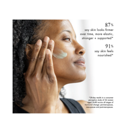 Redesign your skin’s future with this advanced longevity treatment formulated to target lost elasticity. Green chemistry biomimetic peptides help counteract the signs of collagen degradation caused by hormonal shifts, improving the look of fine lines and the feel of firmness, while bioidentical, vegan marine collagen peptides improve visible resilience and hydration. Omega-rich botanical oils deliver essential nourishment as a blend of adaptogens and antioxidants help fortify the barrier. The result: skin feels deeply nourished, with renewed bounce and vitality. It’s a topical solution engineered for skin in perimenopause and beyond.