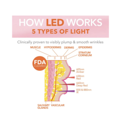 An FDA-cleared, clinically proven LED-powered lip device with 56 LED red lights to target the full lip area to fight visible signs of aging such as fine lines, wrinkles, and creases on and around the lips stimulating natural collagen production and improving circulation.